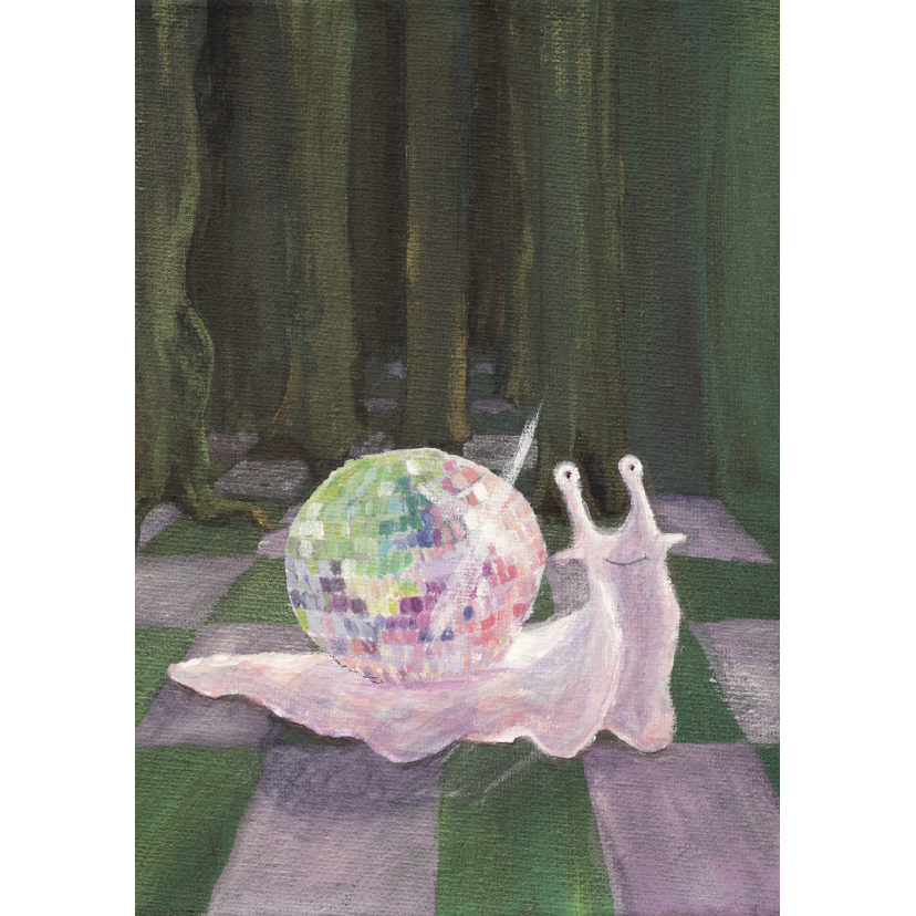 Originalmotivet är målat med akryl på duk, i min ateljé i Värmland. När du köper detta print får du ett högkvalitativt konsttryck som ger liv till varje rum den får ta plats i. Tänk på att olika skärmar alltid återger färger olika. Det kan aldrig bli exakt, men med discosnigeln blir det aldrig fel.