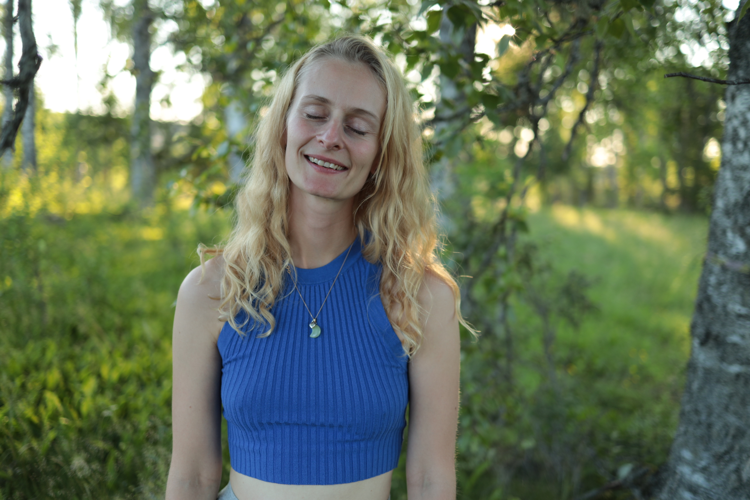 Amanda guidar en kroppsscanning med stor närvaro.